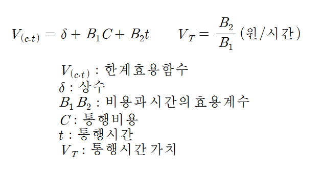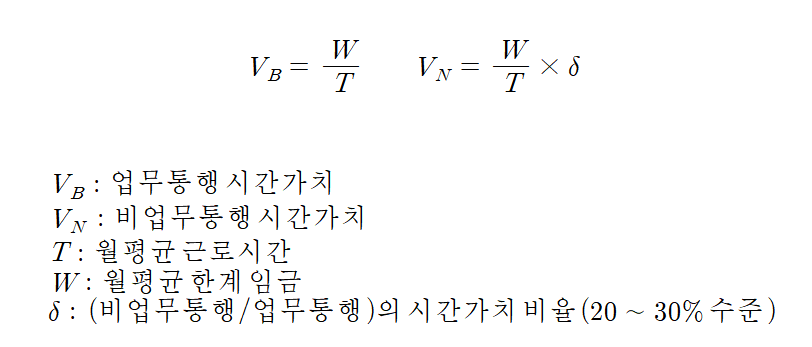 - 단위 시간당 통행의 가치를 화폐화 한 것