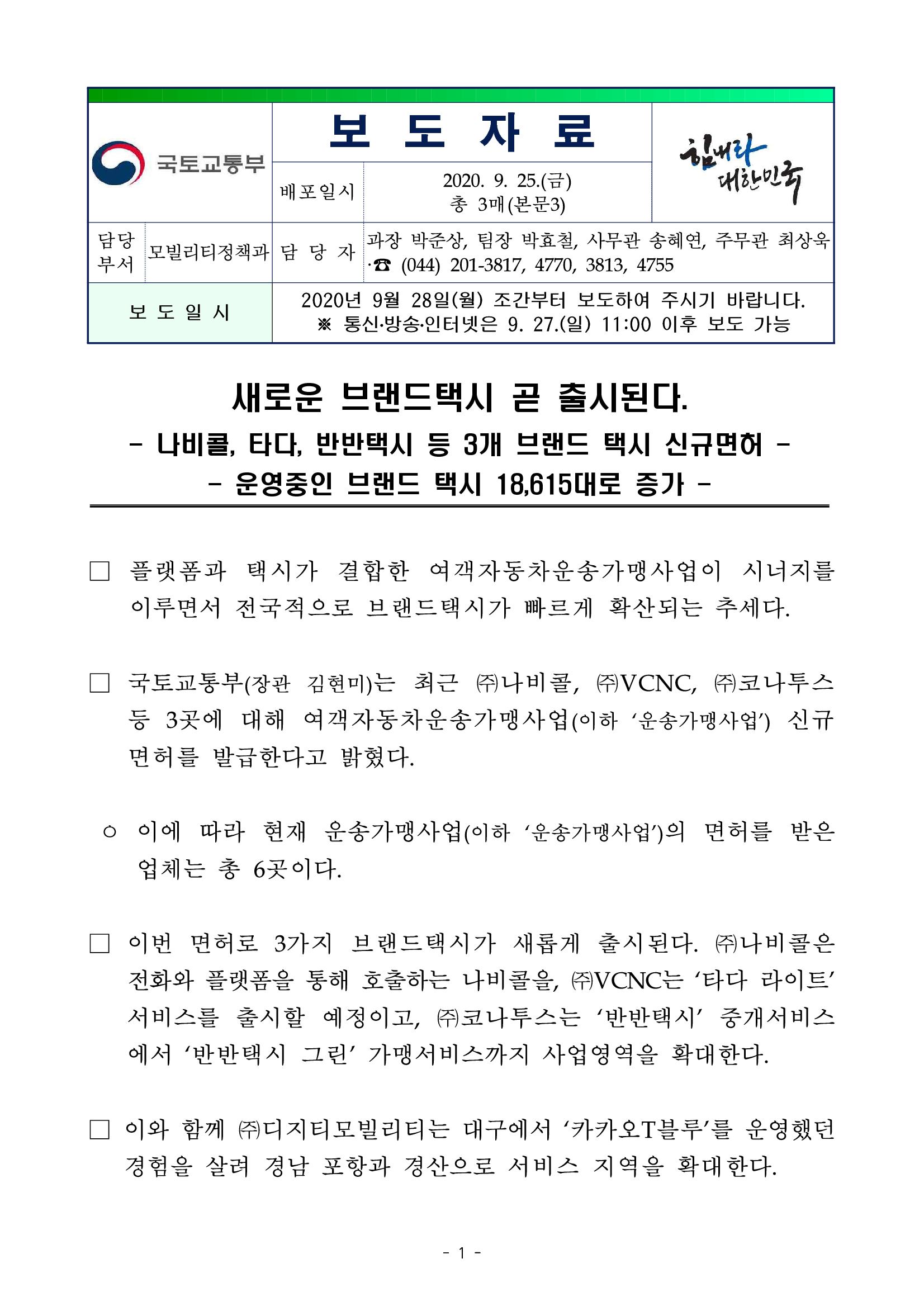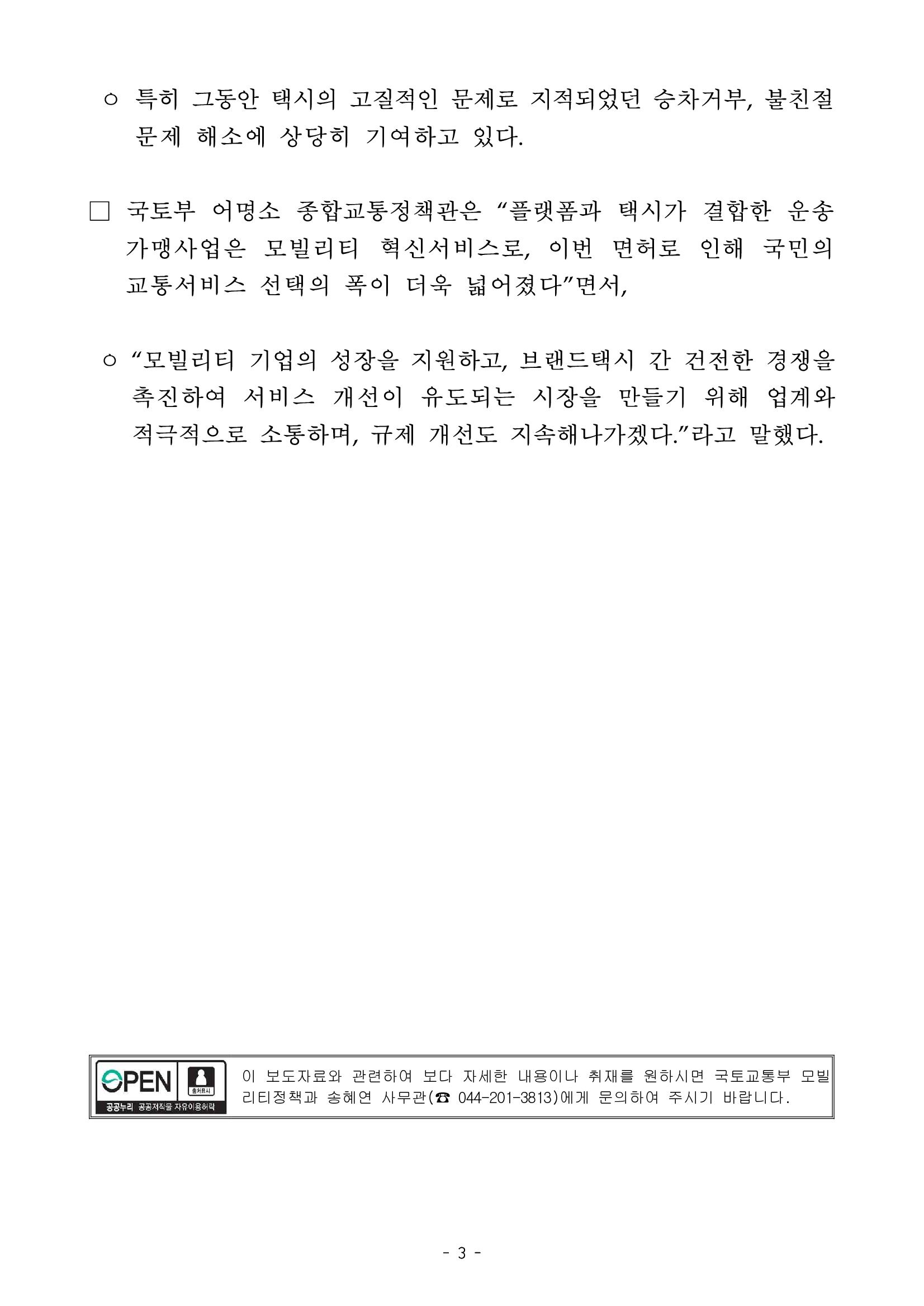 3type의 플랫폼 운송사업 형태 중에서 type2 플랫폼 가맹사업에 해당하는 브랜드택시 신규 먼허가 발급된다는 소식.