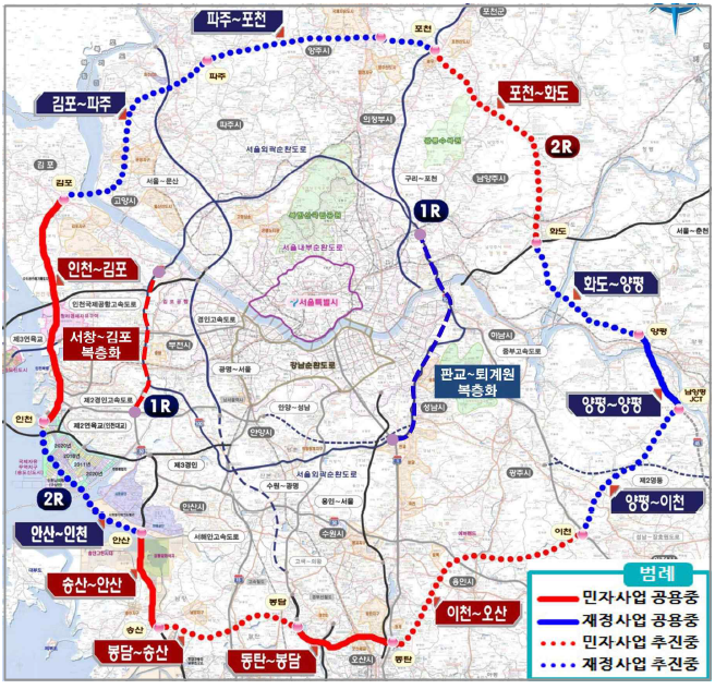 ① 수도권 외곽 순환고속도로망을 조기에 완성하여 도심 교통량의 분산 추진